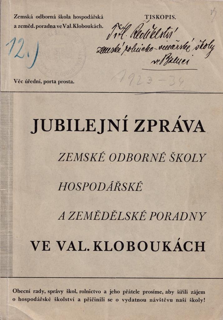 Na webu muzea v sekci Muzeum/Muzejní sbírky a fondy/Knihovna přibyla nová položka: "Jubilejní zpráva Zemské odborné školy hospodářské a zemědělské poradny ve Val. Kloboukách" z roku 1934 (ve formátu pdf). Čtení o škole po deseti, respektive jedenácti letech její existence...