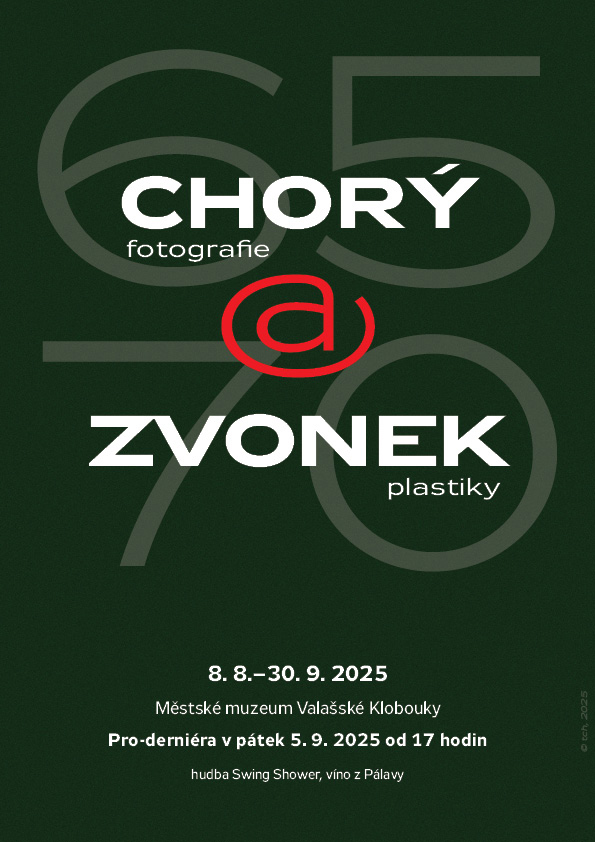 Srdečně zveme na předderniéru výstavy „Chorý Zvonek“. Výstava, která se koná u příležitosti významných životních jubileí autorů, představuje fotografie Tomáše Chorého nasnímané v Normandii a kovové plastiky Miroslava Zvonka. Předderniéra se uskuteční 5. 9. od 17 hodin, zahraje skupina Swing Shower.